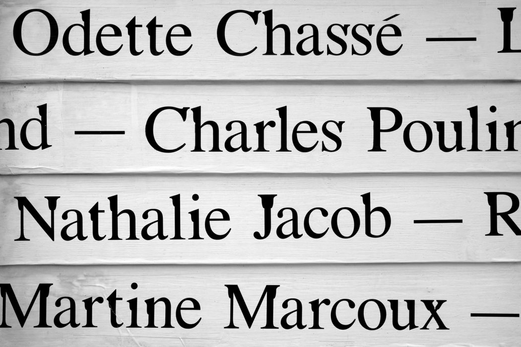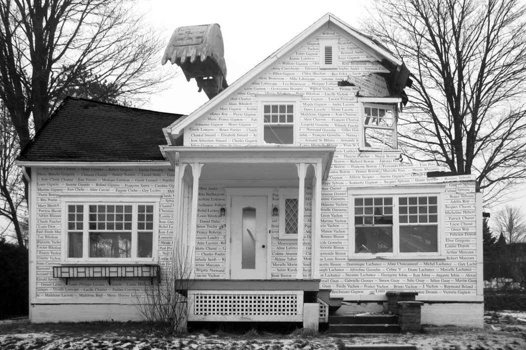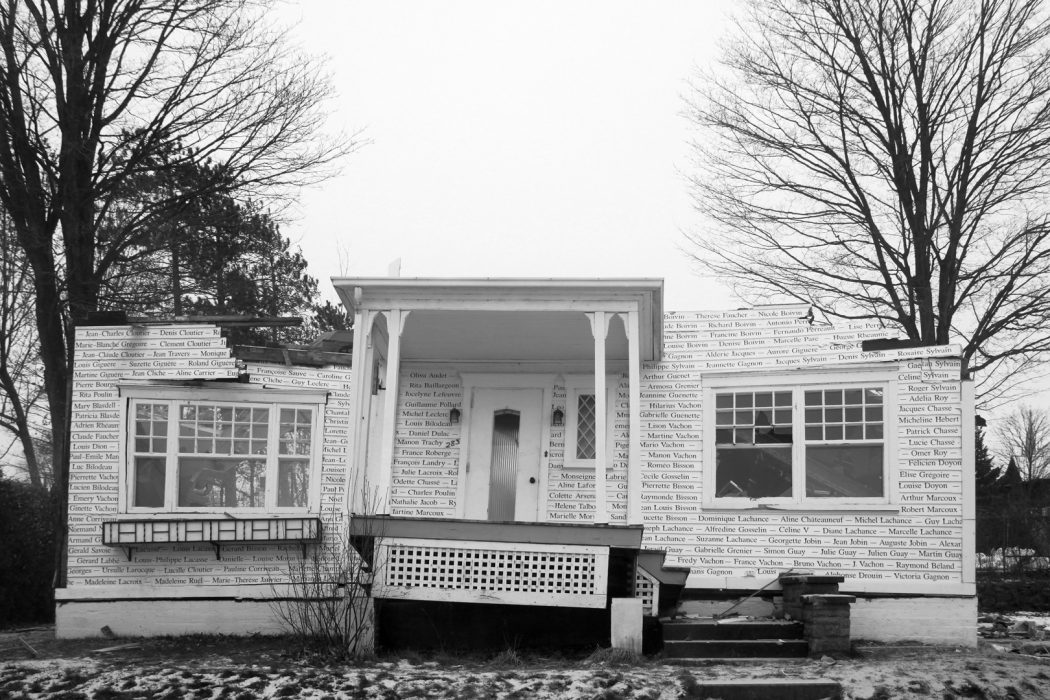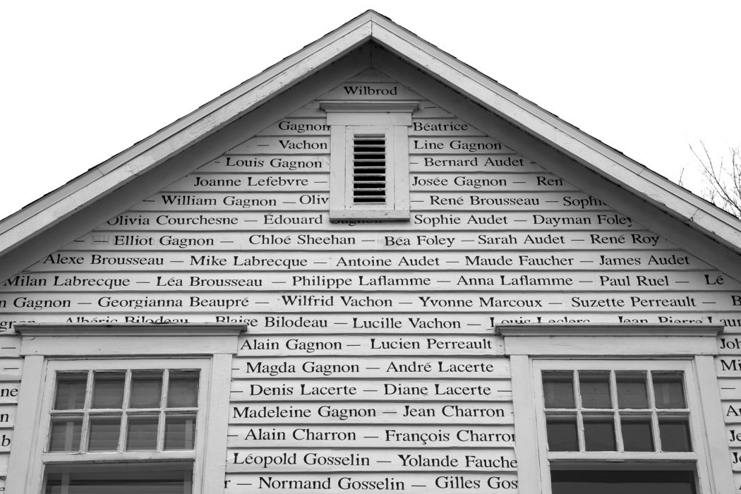Béatrice Vachon’s house is one of the many properties in Sainte-Marie that will come under the peak of the demolition workers following the floods of spring 2019. Torn to witness this forced separation with his childhood house, our Creative director felt that a symbolic gesture had to be made : to write on the walls of the house the names of people who have lived there and visited it for decades.Personalized typography takes up the architectural details of the columns as an ode to the house.
