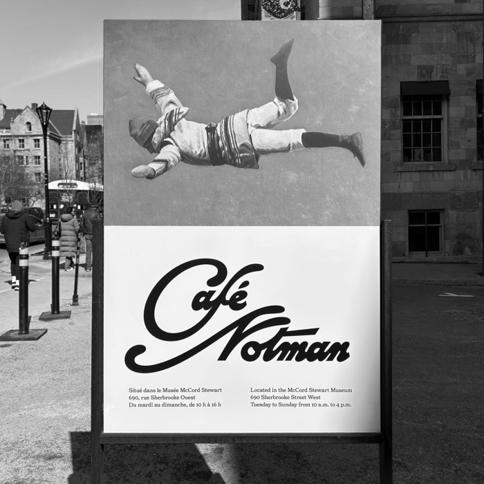 A newly refurbished dining space within the McCord Stewart Museum, Café Notman is located in the cultural heart of Montreal and attracts tourists, students and locals. The name is evocative, as it pays tribute to the renowned photographer William Notman (1826-1891), whose extensive collection of photographs and negatives are held by the Museum. For this identity project, a signature was created in a nod to the neon sign of the Notman & Sons studio that once stood on Sherbrooke Street West and now overlooks the Café. Both contemporary and inspired by the belle époque, the identity is distinct and appealing, blending harmoniously with a comforting palette and a tongue-in-cheek visual direction featuring the artist’s photographs.
