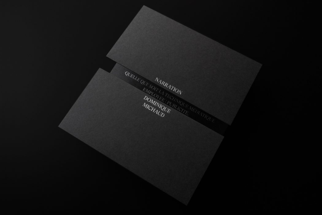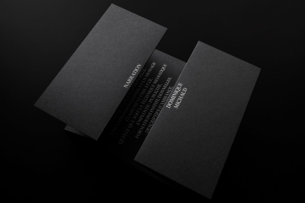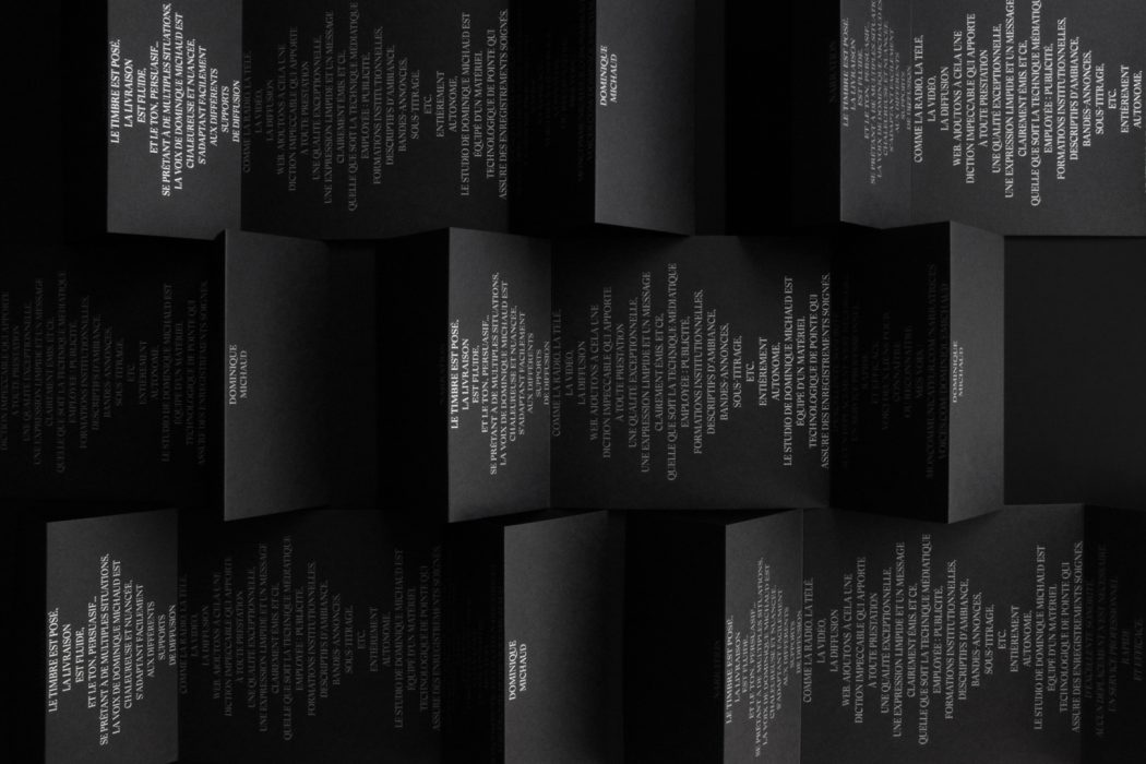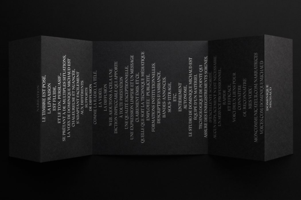 “Nothing is as beautiful as the human voice, when it is beautiful” is the premise on which the concept of this leave behind for artist Dominique Michaud is based. Memorable by its deployed form with the text as an exergue: the raw material of this vocalist talent. Like a jewel in a box, the texts of metallic ink shine on a black canevas to give a precious and high-end signature, like the voice of Dominique Michaud.