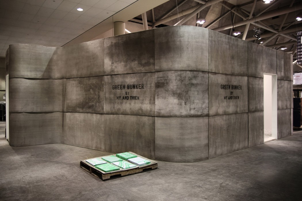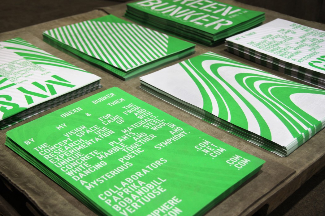 Domison is a furniture manufacturer whose philosophy is to offering sophisticated, unique and innovative goods within the reach of most wallets. According to Domison, quality design is a right rather than a privilege. As part of the Interior Design Show in Toronto, Domison commissioned Paprika to create a print aiming to explain the concept surrounding their stand “Green Bunker”. We decided to design a poster that would have a dual function. It would both be a leaflet given to visitors and play an active role in the installation. Crumpled, wrinkled, and twisted, it became a second skin to the “Green Bunker”. When simply folded, it metamorphosed into an informative leaflet. In total, eight different ways of presenting the same information were developed.