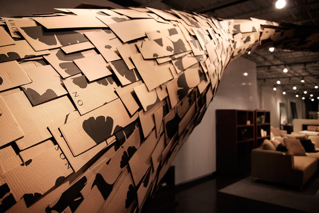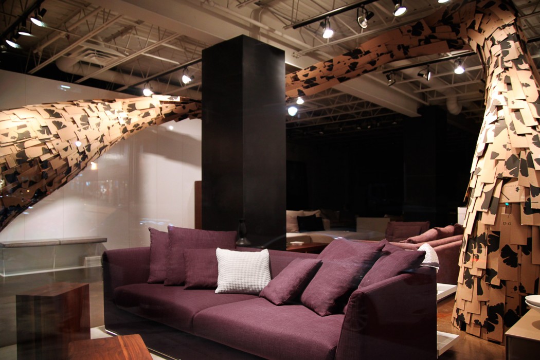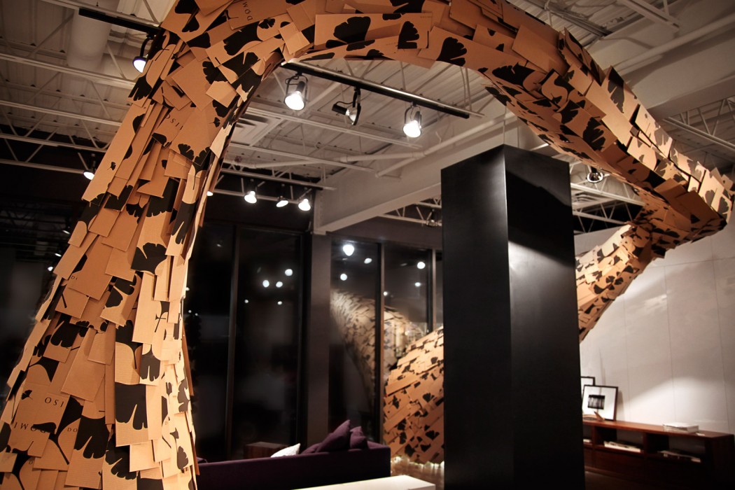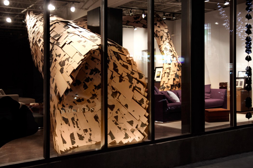 Domison is a furniture manufacturer whose philosophy is to offer sophisticated, unique, and innovative goods within the reach of most wallets. According to Domison, quality design is a right rather than a privilege. In 2009, Paprika was commissioned to make an unusual window display. For the occasion, we allowed ourselves to venture beyond typical window displays and we imagined an abstract snowstorm blowing in the store. Built from handcut cardboard pieces, the installation required over twenty hours of assembly work and over 600 square feet of recycled cardboard. The result was breathtaking!