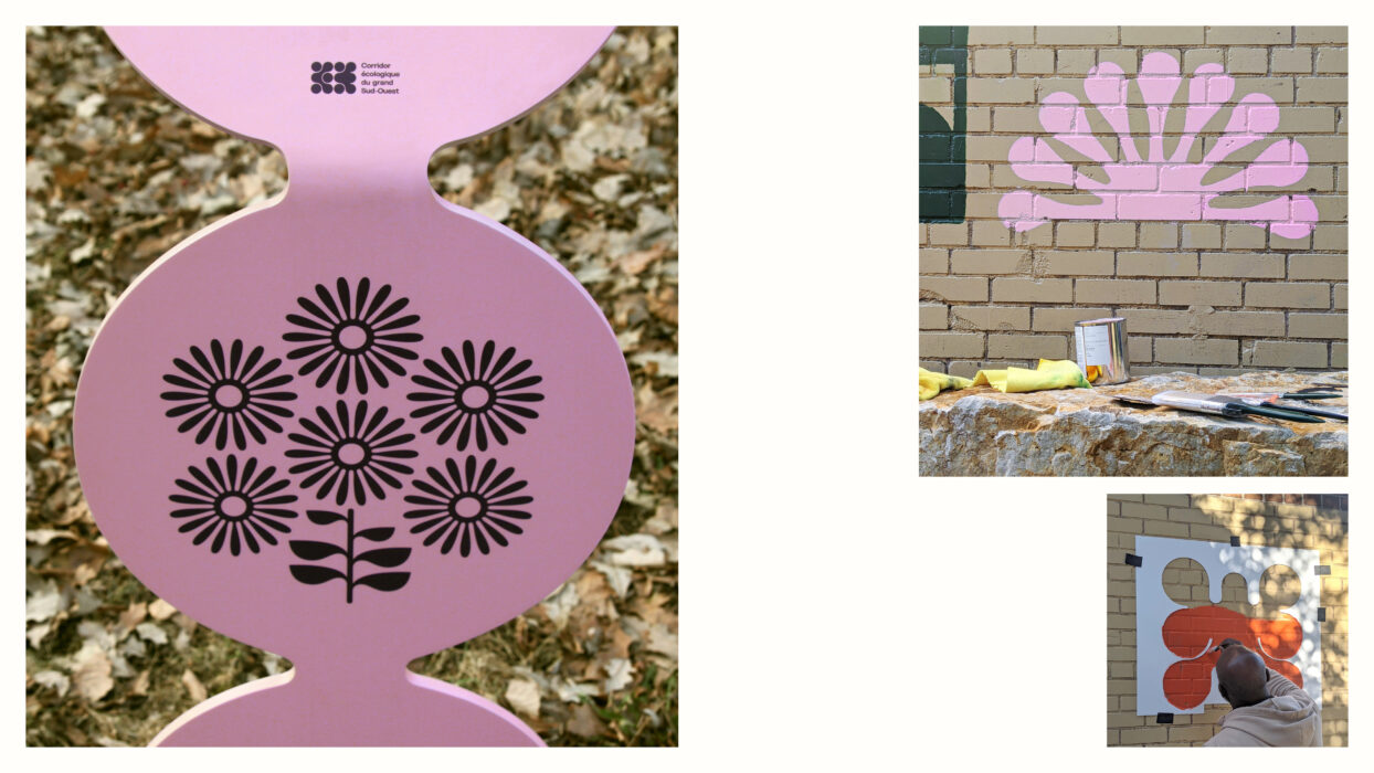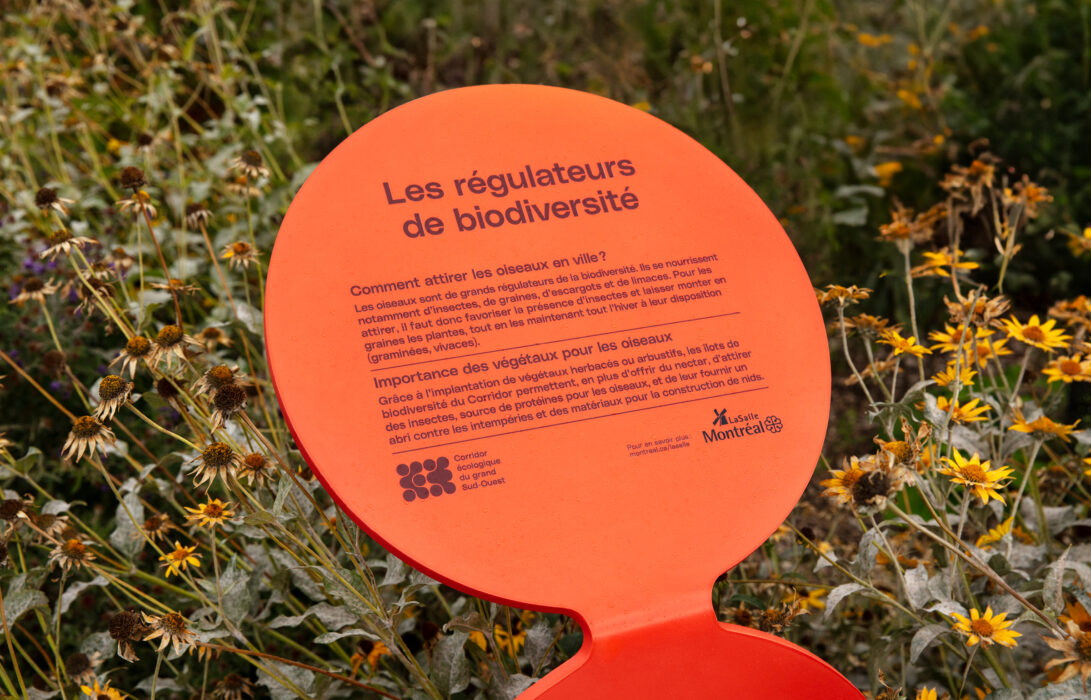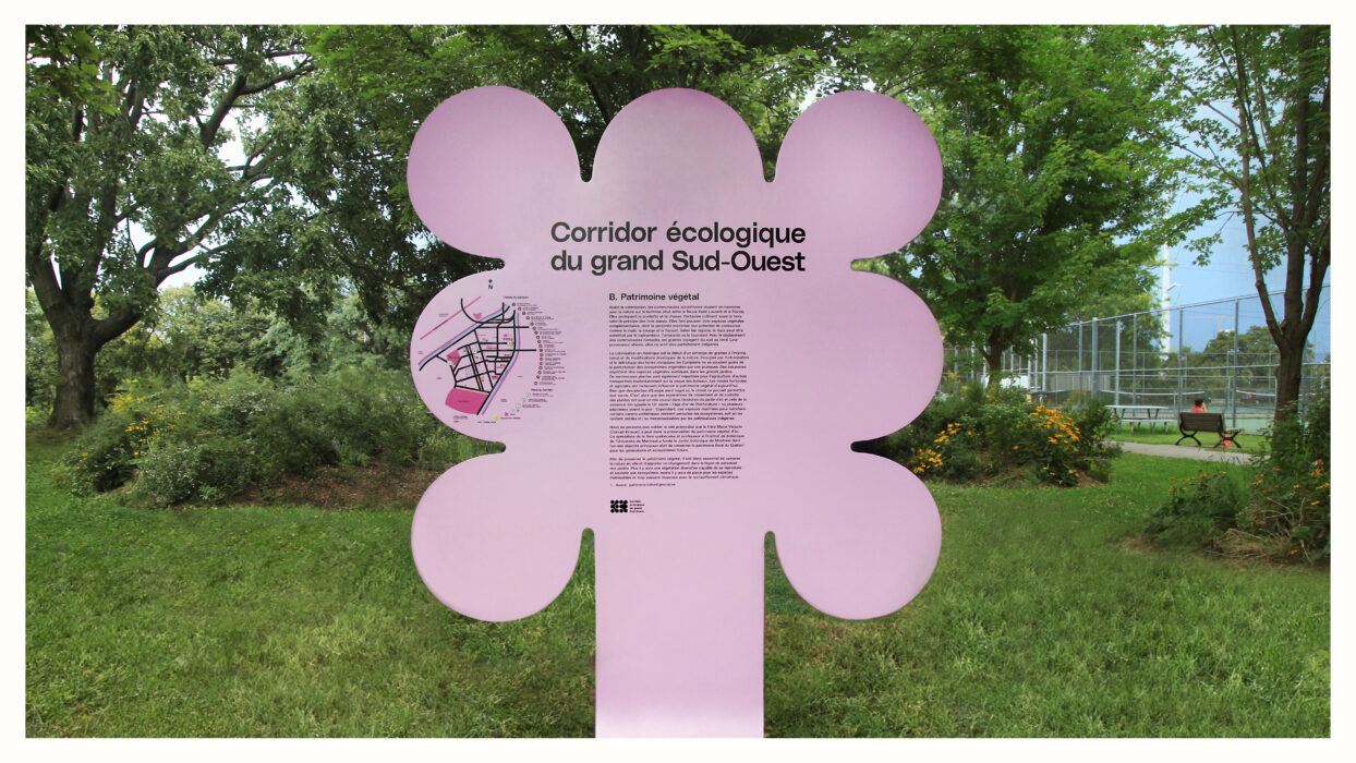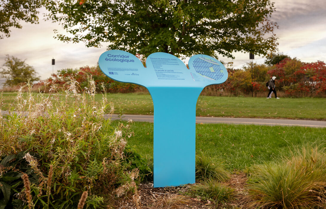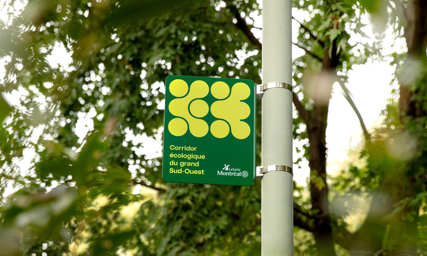 One of the winning projects in the first edition of the City of Montréal’s participatory budget, the Corridor écologique aims to protect nature in the city by connecting important biodiversity spaces in the boroughs of LaSalle and the Sud-Ouest. “Islands” of shrubs, mini-forests, and flowers were installed in green alleys and parks, enriching the urban plant heritage of these green spaces. The project’s brand identity was rooted in these biodiversity islands and represented by a logo whose graphic design evokes the eco-corridor’s implementation plans, and is further reflected in the actual shape of the interpretation panels. The whole concept was enhanced by a dazzling colour palette. A series of custom-drawn illustrations of flora and fauna further supported the corridor’s pedagogical content.