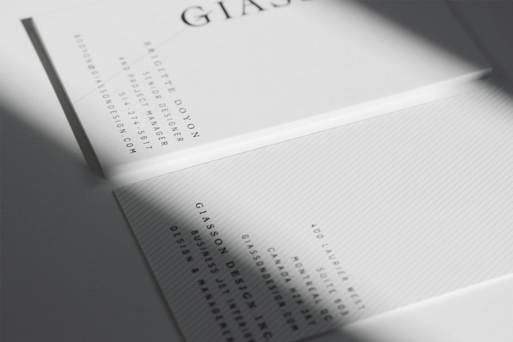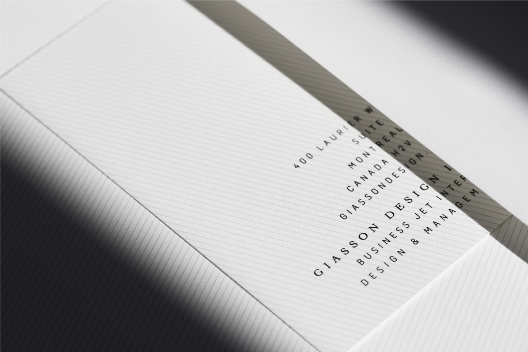 Giasson Design is an agency specialized in the interior design of corporate jet planes. Evolving in a very precise realm, the company wished to have a new identity that would convey well the advantages of its high-end services.