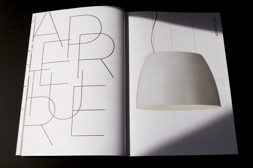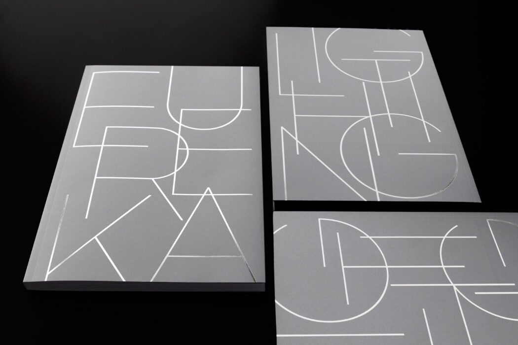 Enhancing architectural space with attractive lighting solutions, Eureka distinguishes itself by creating unique and innovative lighting fixtures. To meet the specific needs of its architectural and interior design clientele, the company creates an inspirational booklet of selected models with distinctive visual direction and curated spaces. For this distinguished clientele, the booklet has become a reference for trends and novelties. Particular attention is paid to this typographic refinement that plays with counter-forms and shapes, an evocative contrast of white light. The letters are intertwined in the manner of lighting fixtures to create architectural compositions. The whole suggests Eureka’s desire to revolutionise living spaces.