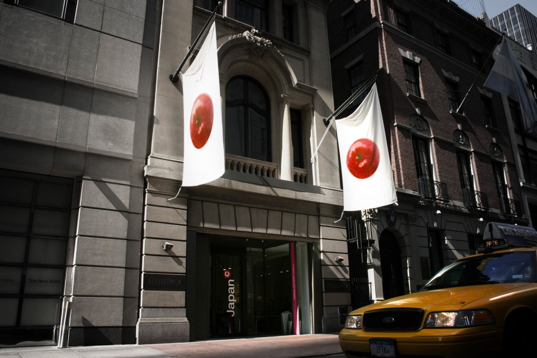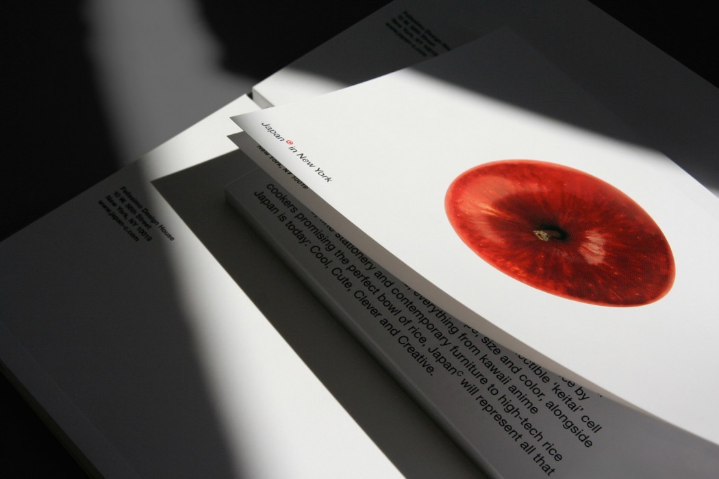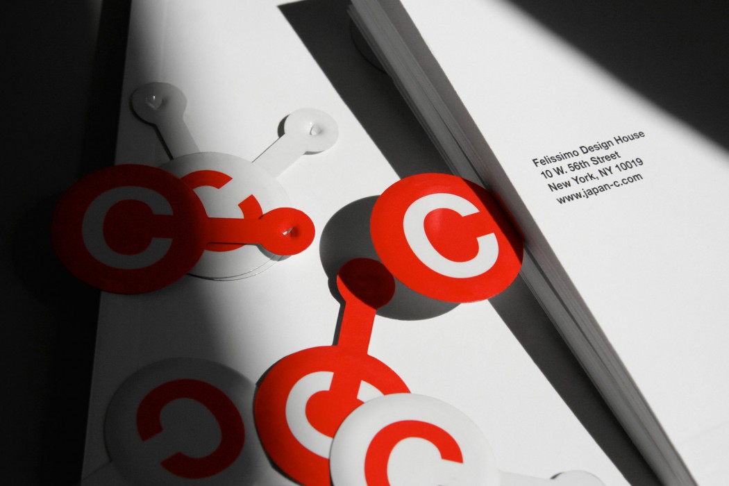 Felissimo Design House is New York-based gallery which promotes various Japanese products. As part of the exhibition “Japan C”, different Japanese designers were invited to introduce their creations to the public. The gallery asked Paprika to design a visual identity exclusively for the event. The identity program had to include the logo, the letterhead design, the catalogue, various prints as well as the signage and the place’s interior and exterior graphic look. As the exhibition was truly eclectic, we opted for graphic simplicity throughout all communication tools. Inspired by the Japanese flag, we thus made a lot of room for the white and graphically exploited the red circle.