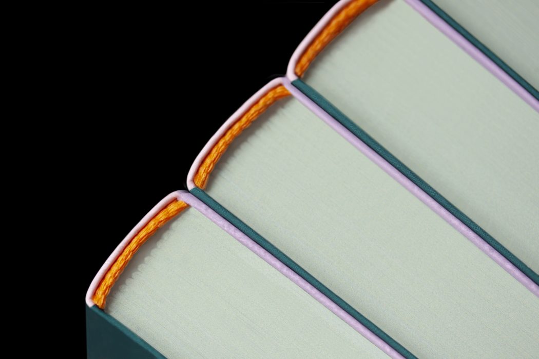 Dedicated to the work of the Swiss artist, the art book Nicolas Party: L’heure mauve is structured according to the architecture of the rooms of the eponymous exhibition at the MBAM and outlines its course. A palette of six muted pastel shades for six different spaces, colouring from the spine to the spine, including the cover and the endpapers. The multicoloured object evokes the painter’s colourful works in dialogue with those in the Museum’s collection. A matte-finish pink paper notebook serves as a canvas for the creative process and presents the musical scores created by singer-songwriter Pierre Lapointe. A work by Éditions scientifiques du MBAM, in collaboration with 5 Continents Éditions, Milan.