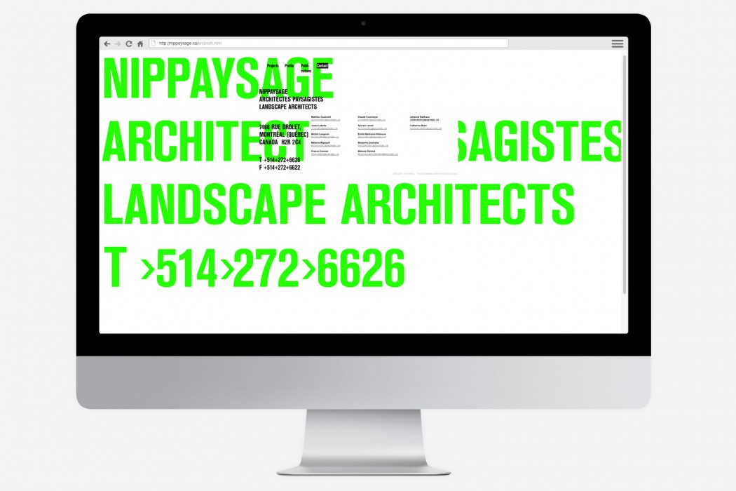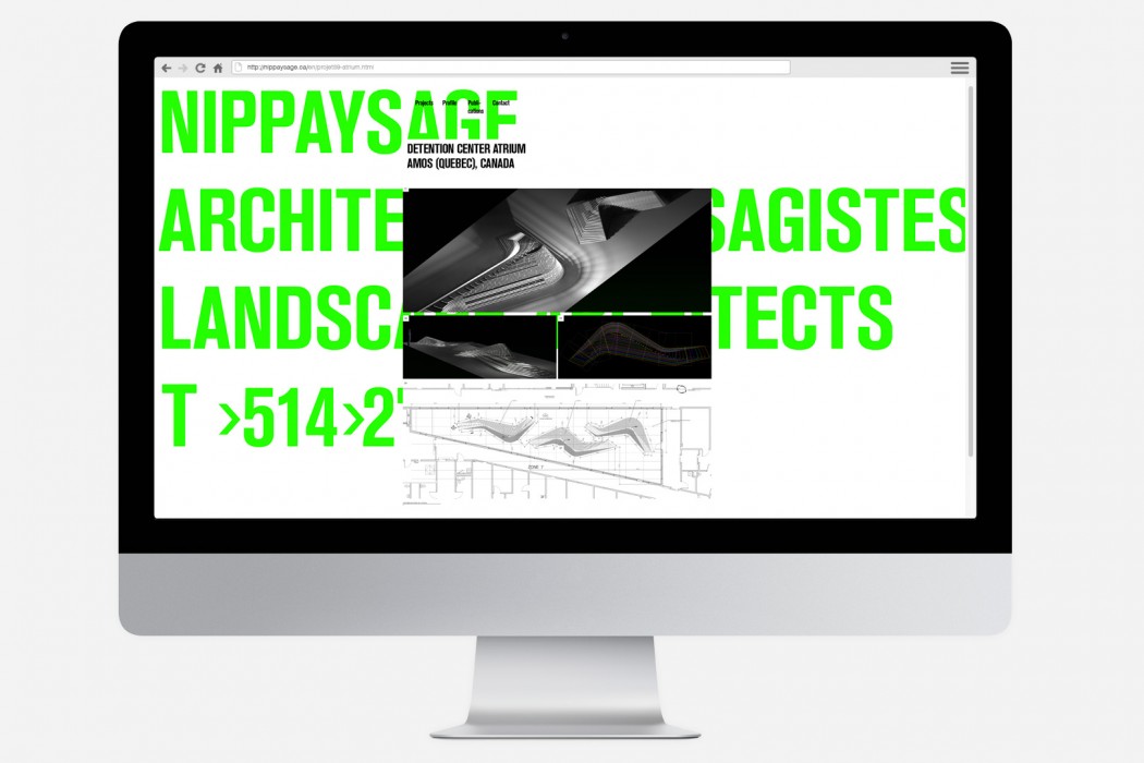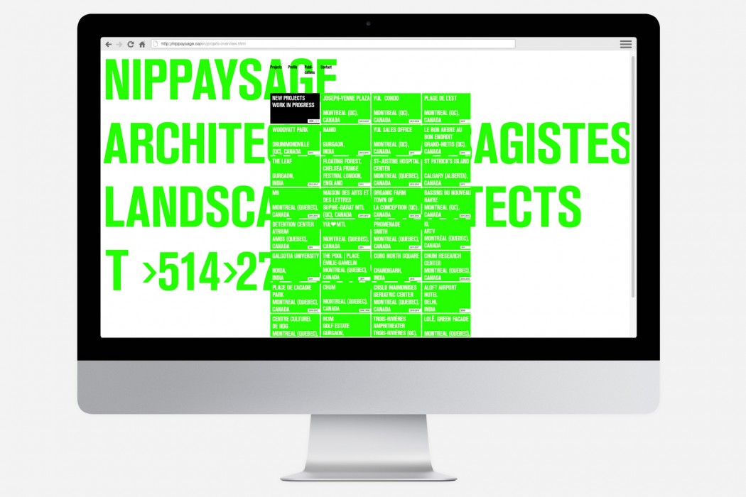 Established in 2001 by five Université de Montréal graduates, the company NIPpaysage is leading a new wave of bold and fresh landscape architects. To convey such novelty, Paprika designed a sassy website that is up to the company’s projects. Peppered with neon green, the website offers a browsing experience which moves away from the usual canvas. In one click, the user is given access to an overview of NIPpaysage’s creations and can deal with each one of them while the website’s atmosphere and background music remain. Well used and divided, the space is undeniably evocative of the company’s fieldwork.