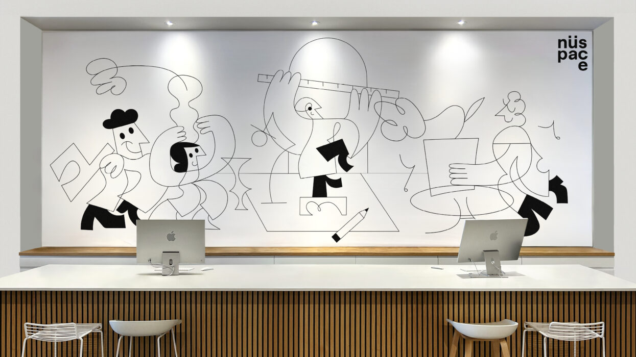 For the rebranding project of this Montreal furniture retailer, typographic work was put forward to update the signature and make it more contemporary and elegant. Redesigned with a font featuring elementary geometric shapes, the signature is deployed as a modular graphic system on the brand’s various media. The illustrations support this system by giving it a playful, accessible dimension, while reflecting themes related to the customer experience.
