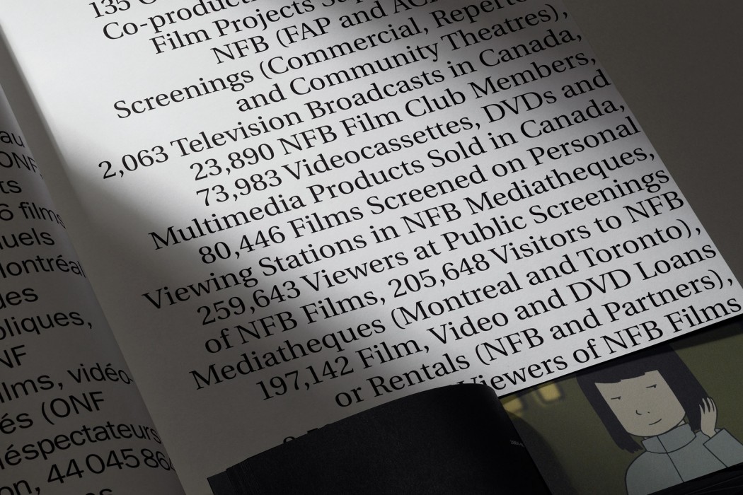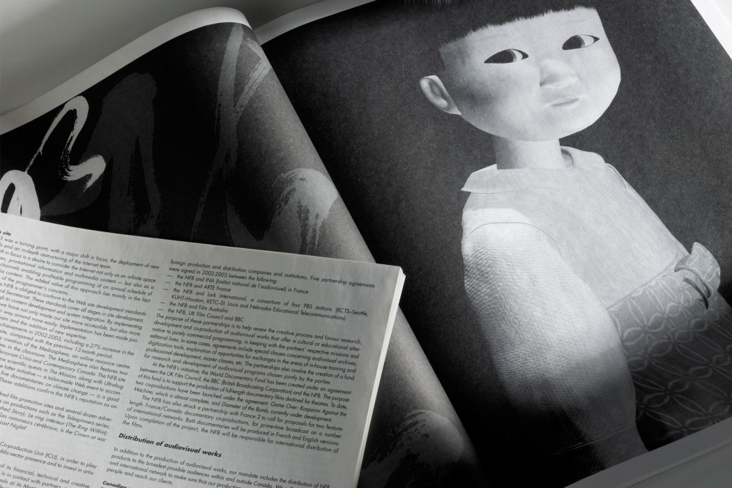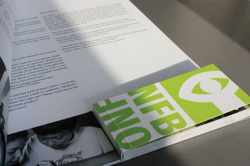 The National Film Board, or more commonly know as the NFB, is known as one of the world’s greatest creativity labs. This institution, which produces and distributes innovation audiovisual works, commissioned Paprika on several occasions to design its annual reports. This collaboration made it possible to develop innovative documents which illustrate NFB’s mission and values both in shape and content.