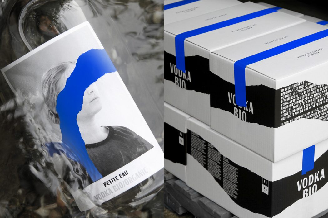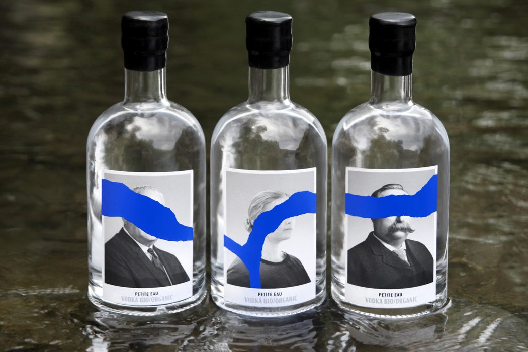 Based in Lanaudière, Distillerie Grand Dérangement perpetuates the memory of the deported Acadians and pays homage to these pioneers of New Acadia; it exults from this terroir of high quality organic products, from grain to bottle. After the launch of SAGA Grand Gin, Distillerie Grand Dérangement is back with Petite Eau, the first organic vodka in Quebec. This one draws its inspiration from the very origin of the word “vodka” which literally translates as “small water” – Petite Eau. As these new-acadians settled on the banks of rivers and streams, these springs were invaluable for the irrigation of the land. It seemed appropriate to us to put this precious source in the foreground, the same source that is used today for the quality of the vodka. A water, of a royal blue, symbolizing the French fact in Lower Canada, of a beautiful density realized with a hot stamping. . Here again, as in SAGA, the faces of the Acadians in this new epic are veiled in mystery by this watercourse that extends from one bottle to the next. The three historically inspired characters: the miller, the water carrier and the dowser, all have occupations related to water. Their faces, under a chiaroscuro lighting, imbue them with prestance. A wax-sealed cap, establishing the handmade nature of the product and its respect for heritage, is also the distinct signature of DGD.