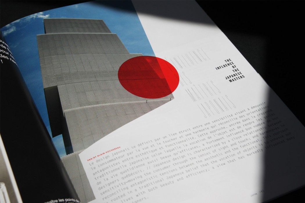 The Canadian magazine Intérieurs is a publication specialized in design and architecture. Paprika was commissioned to improve the magazine’s cover page design in order to highlight its artistic and creative direction and rework its graphic charter. Not only did we have to charm the current subscribers, but we also had to increase the number of potential readers among the art, design, and architecture lovers. For the cover page, we suggested a minimalistic design and the addition of an inside cover which, once open, unveils the reference image and visual identity of the magazine. This inside cover reflects on the idea of “interior”. The cover page isn’t limited to one typical page, but it efficiently invites the reader to venture further. As for the interior pages’ design, its diverse and dynamic display eases the reading and gives rhythm to the magazine.