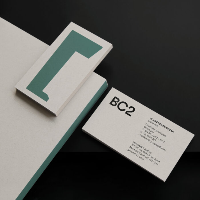 The updating of BC2’s identity and platform should naturally evoke the firm’s vast field of expertise as defined by Reflecting Space. Anchored with strength and stability, the letters of the typography have an assertive character. The typeface, with its interplay of right angles and curves, evokes both the firm’s rigorous and flexible qualities. Through its shapes and counter-forms, spaces are created that relate to each other, the eye circulates. The graphic platform presents the schematisation of BC2’s flagship projects, thus highlighting the pure forms themselves and creating a spatiality. Their variation evokes the rationality of the technical plan, made accessible by an offbeat and contemporary colour palette combined with the raw material.