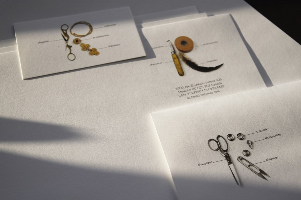 Working for a highly targeted clientele from the dance, drama, cinema, television, and circus industries, Rochefort is a company specialized in costume, shoe, and stage prop design. The company wanted a visual identity that would represent them – one of the rare companies in the industry which can rightly claim expertise in many costume trades – well. Paprika thus made a monogram from tools and fabrics used by costume designers, prop masters, shoemakers, and milliners. In addition to highlighting the distinct nature of Rochefort in comparison to the competition, the concept communicates the extent of its services. It also promotes the savoir-faire and creativity of its artisans. In total, six variations of the monogram were included the letterhead design.