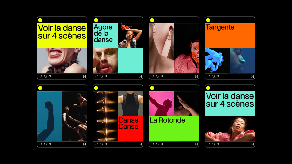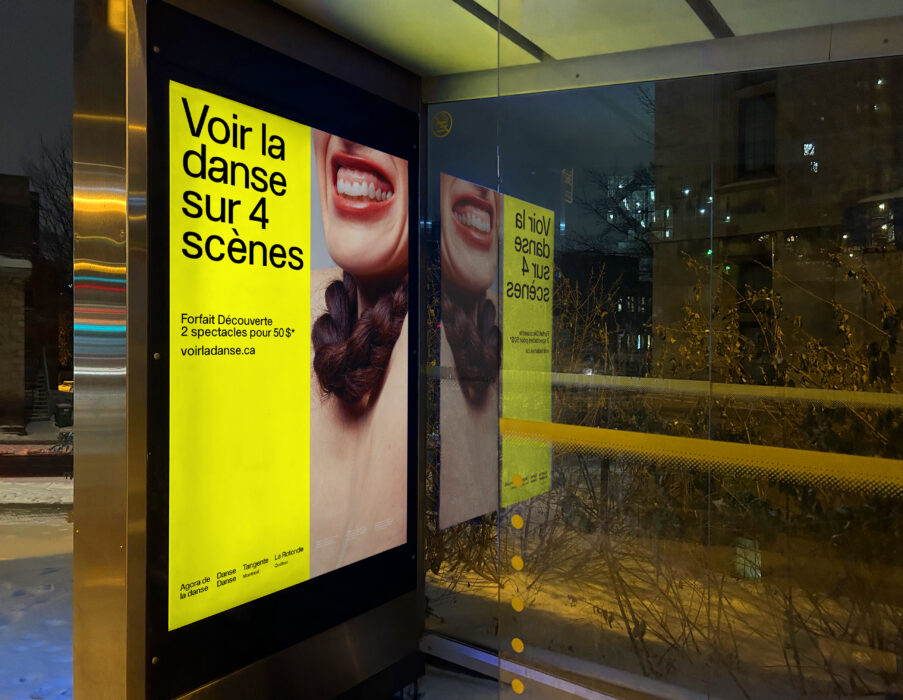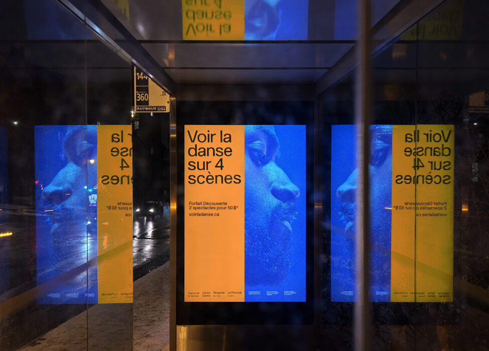 For the first time, four presenters specialised in contemporary dance, Agora de la danse, Danse Danse, Tangente and La Rotonde, have joined forces in a daring joint campaign: See Dance On 4 Stages. Paprika has created a 360° campaign program for this offensive, with dance at the heart of everything as an inescapable strike force. A vivid and saturated colour palette, coupled with a seasoned visual and video direction, complete this platform, which is deployed on the Web, in poster campaigns and on television.